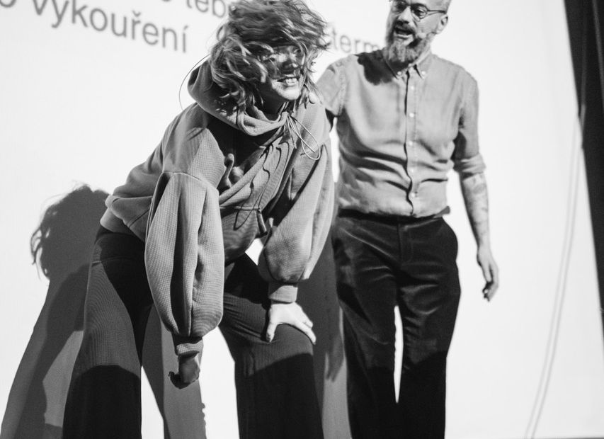 Přednáška o vztazích a komunikaci. Ester Geislerová a její příklady ze života. Honza Vojtko a jeho příklady z terapeutovny.